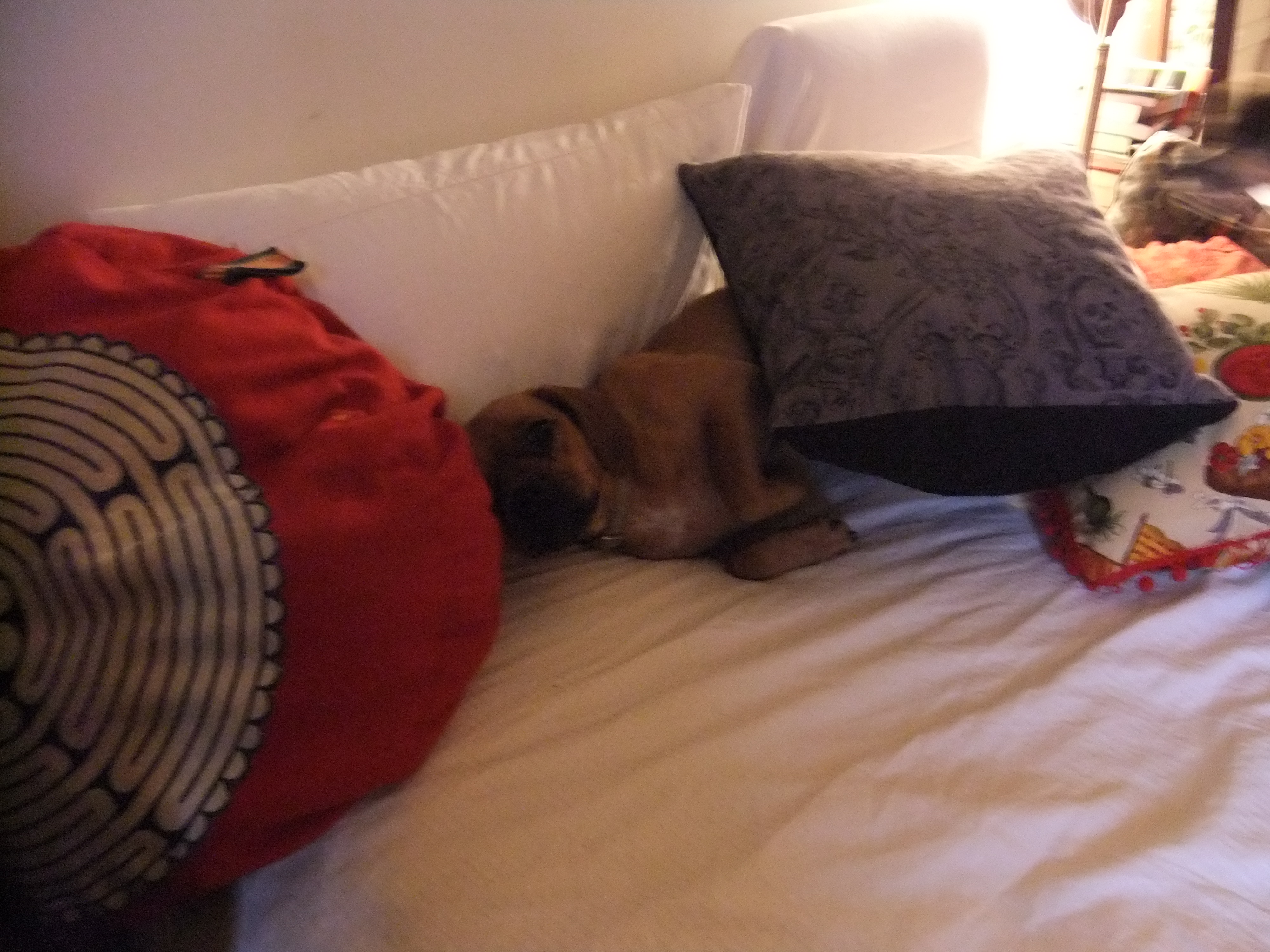 I took these pictures in about seventy seconds. I lose count of how many times I make my bed in a day. Sadly, I didn’t get the final picture, the one where the Evil Brown dog wriggled her way to the edge and fell off the bed, yanking down the rest of the duvet, in its entirety, on top of her. She made a very satisfying-sounding thump and then I lost sight of her for a while.