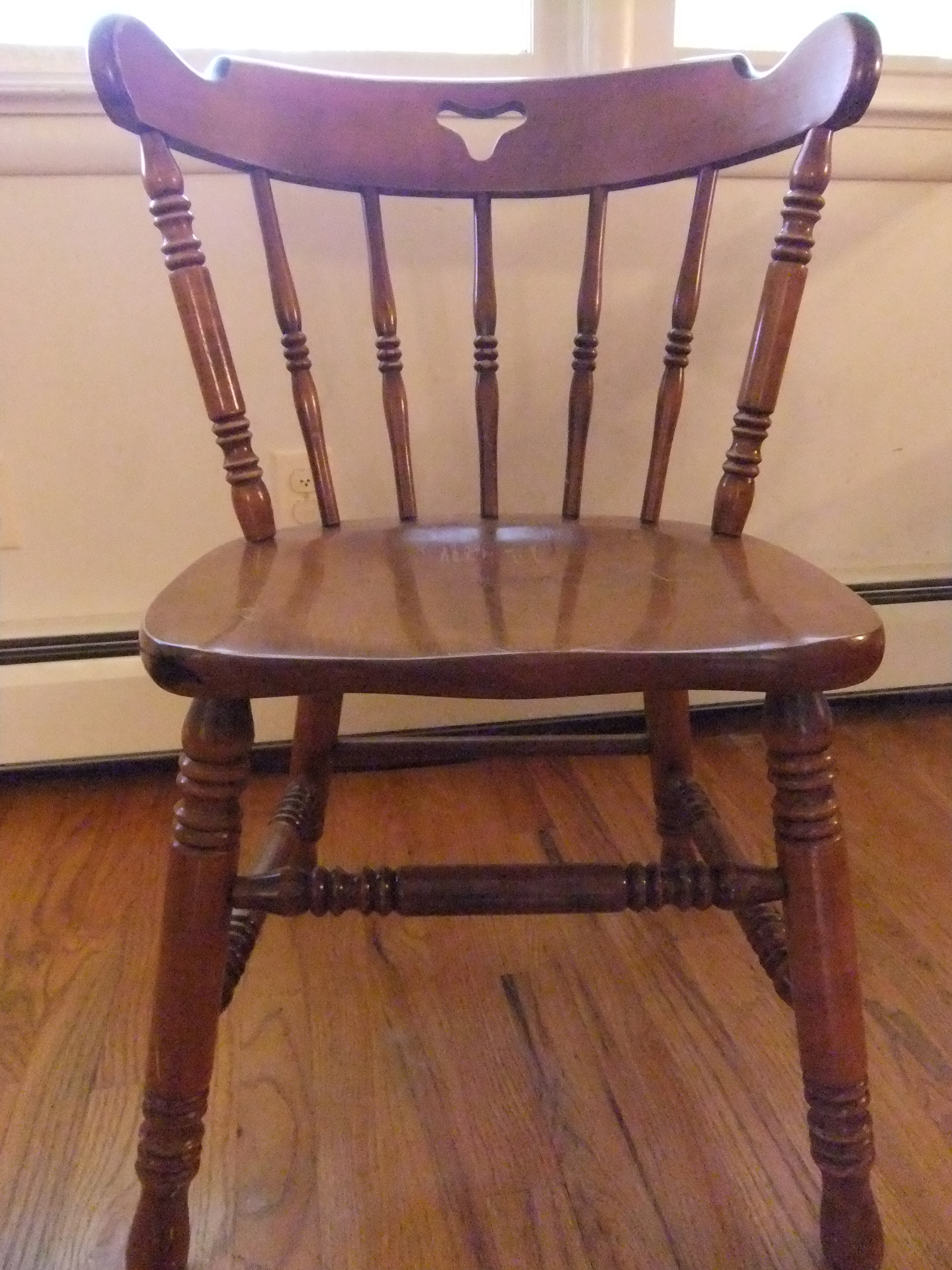 Just a pair of dinked-up wooden chairs that refuse to die. I sit in one to write. It isn’t terribly comfortable. In my house, we need a lot of chairs. There are a lot of butts.