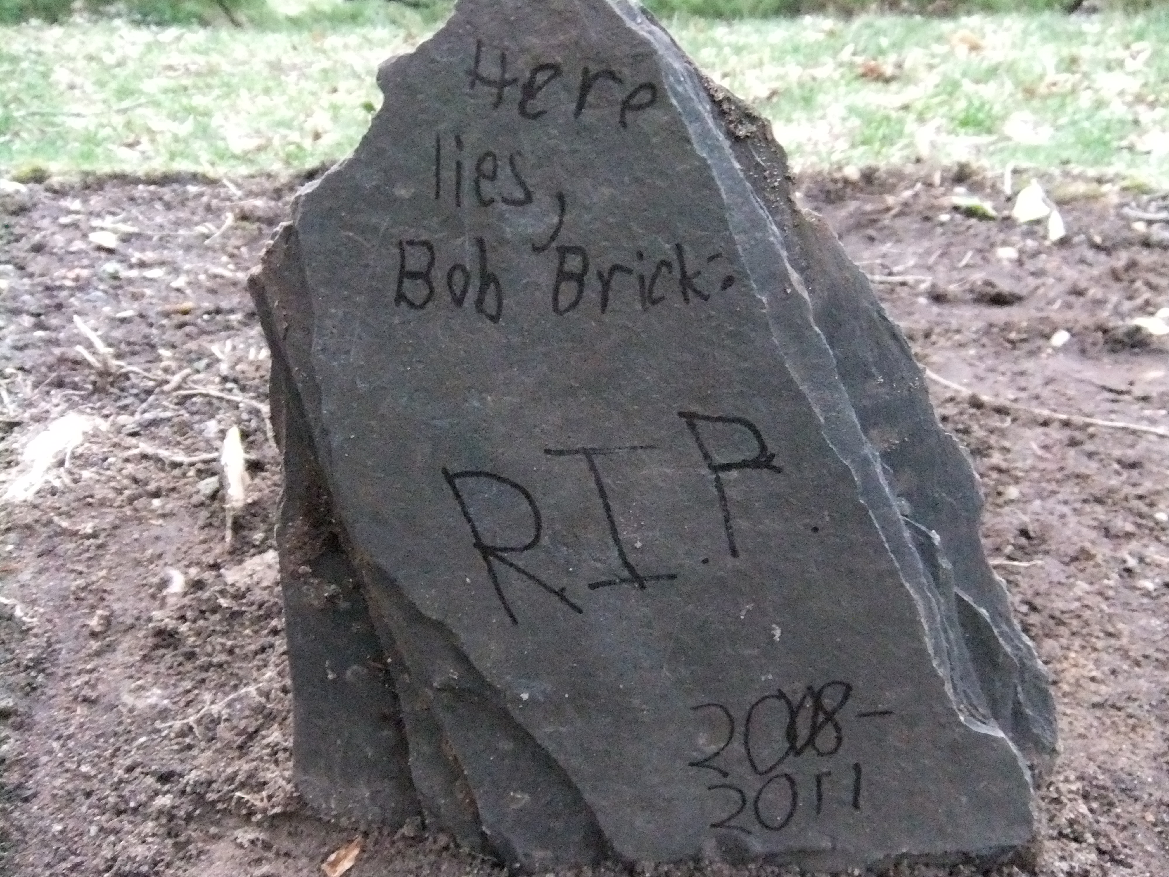 40. Oh my gosh! I love this post. What a funny story – I laughed out loud, and found myself hoping that Brickie, aka Bob the brick, wasn’t buried alive. RIP, Bob.