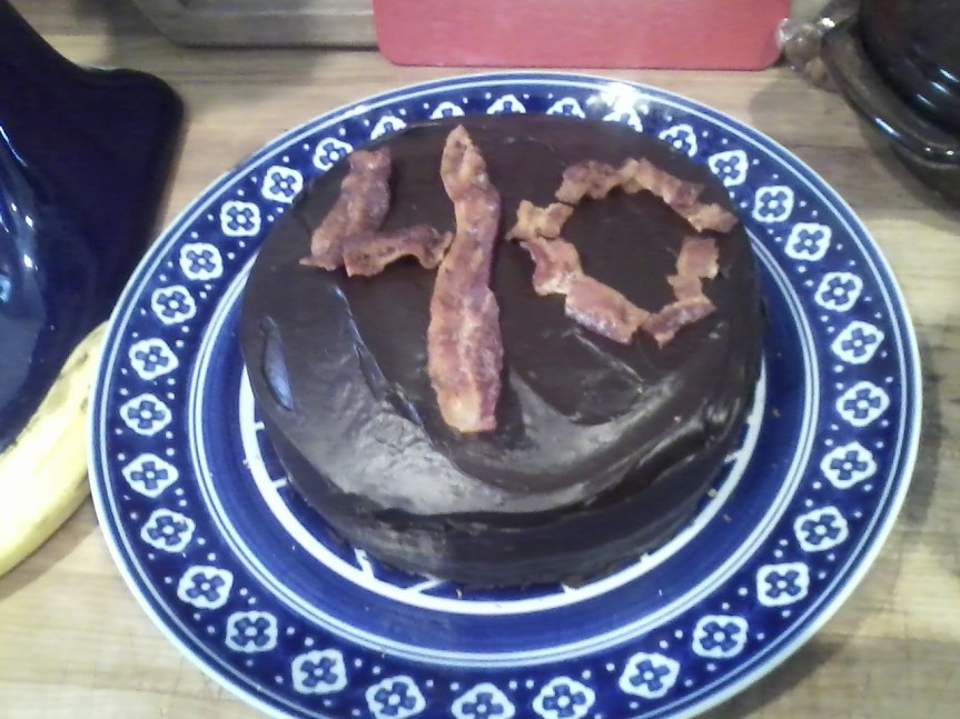 Now, nothing can truly compare to a dark chocolate box cake made by your eldest child topped with your age in bacon. But the cake that my friend Michelle made me is a close second.