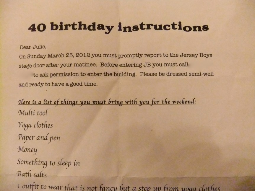 My actual birthday, the day I turned 40, was a two-show day. My mom had been in town helping take care of the kids so I got to see her on my birthday for the first time since I don’t remember when. Both CC and I were working a lot of overtime so I wasn’t expecting a big to-do from anyone.