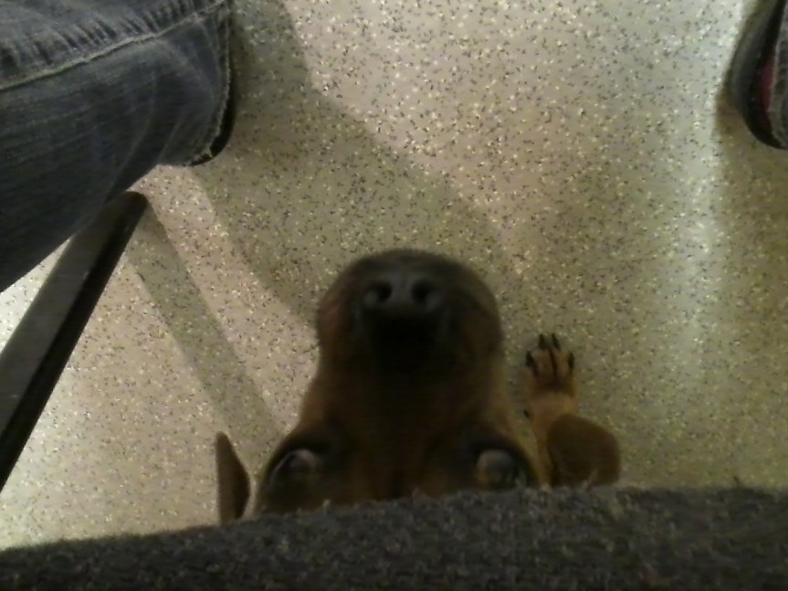Casey under my chair in the exam room