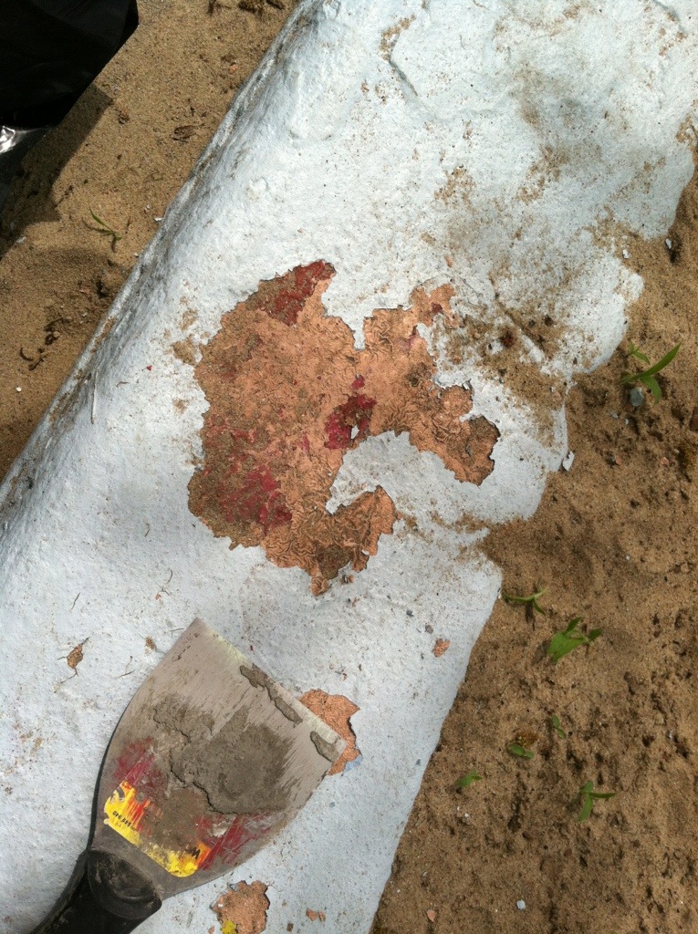 Have you ever painted something near sand? It’s pretty interesting. Also, scraping down to try to get a smooth surface was a real pandora’s box. Many layers of decades-old paint were underneath, and long ago storms had breached the paint. Bubbled paint full of wet sand abounded.