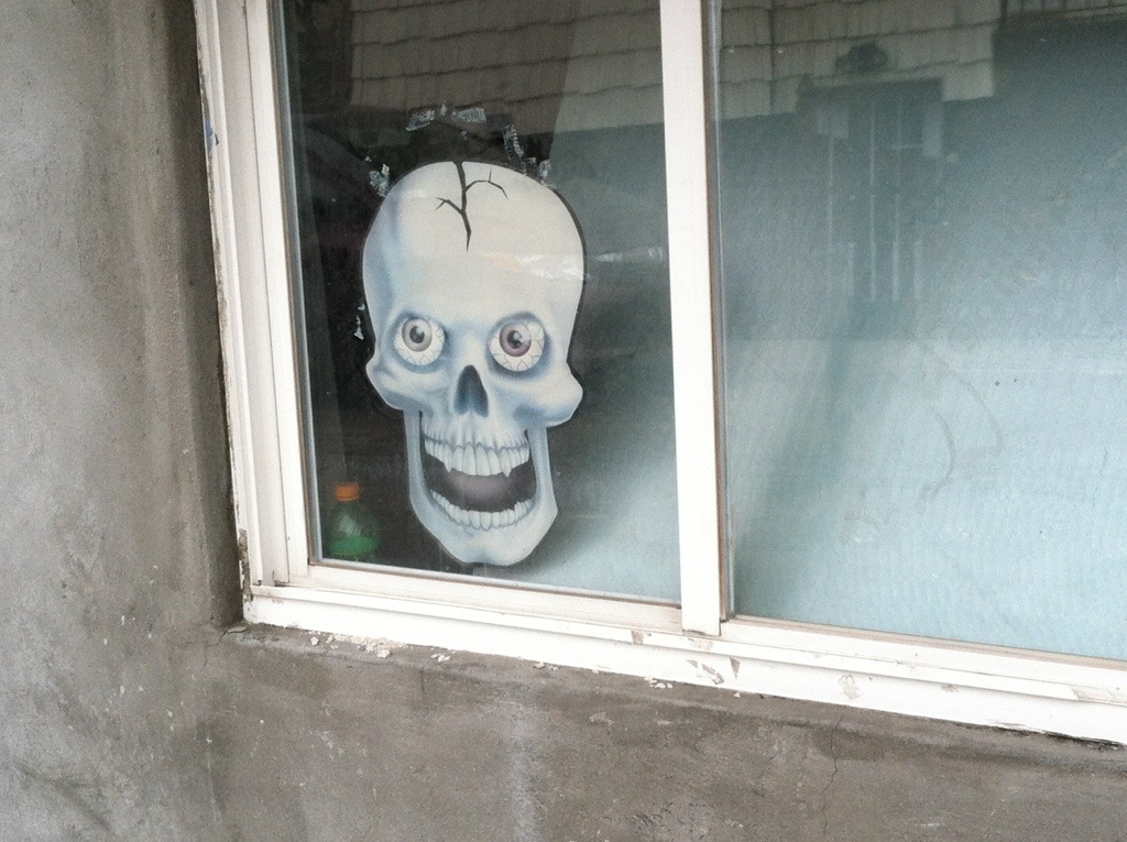 It was just before Halloween that the storm hit. This decoration still adorns a basement waiting for residents to return.