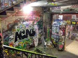 We decided to walk back to the hotel a different way. We kept passing these graffiti-covered entrances to alleys and staircases.