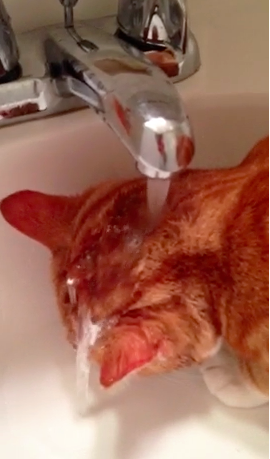 As far as what he’s doing in the refrigerator, I’m quite sure he’s looking for water. In addition to being Bacon Cat, he is also Water Cat.
