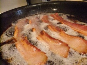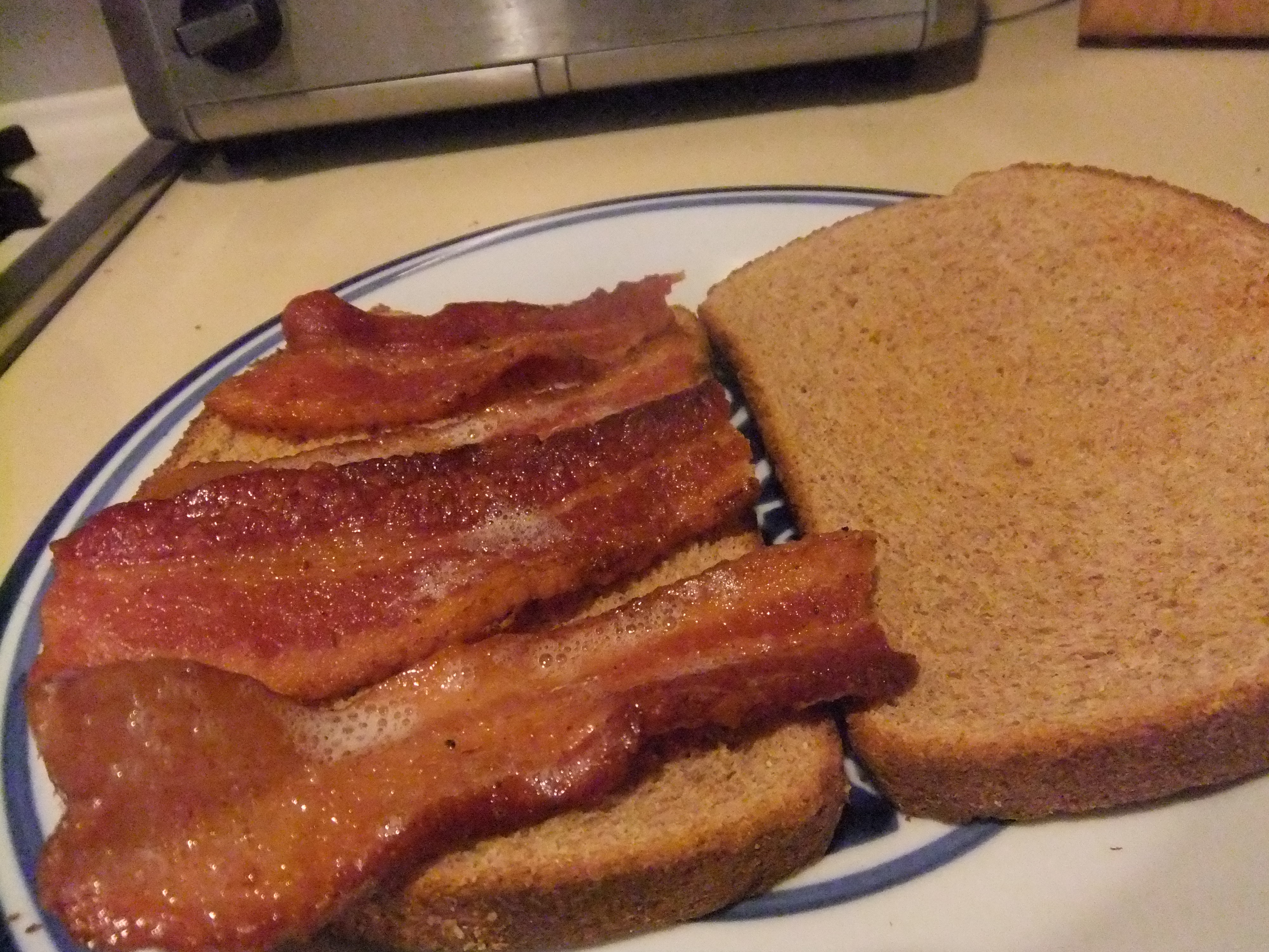 Bacon, half a pound, and the paper towel it was draining on. Though not the plate.
