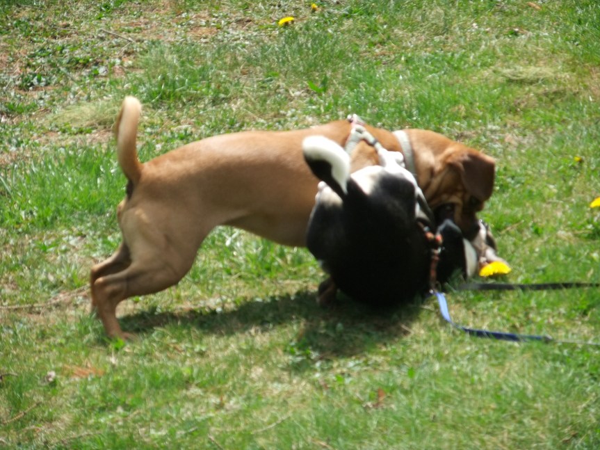 We’re puggles. We’re so smart. Hey, look! Grass!