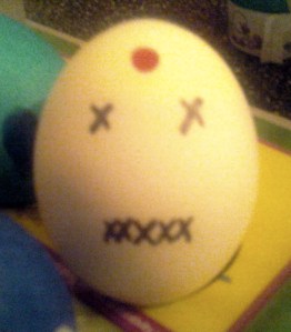 Easter is where all holiday traditions have broken down in this family. We’ve done something different every year, to new levels of failure every time. I posted about a couple of them here and here.