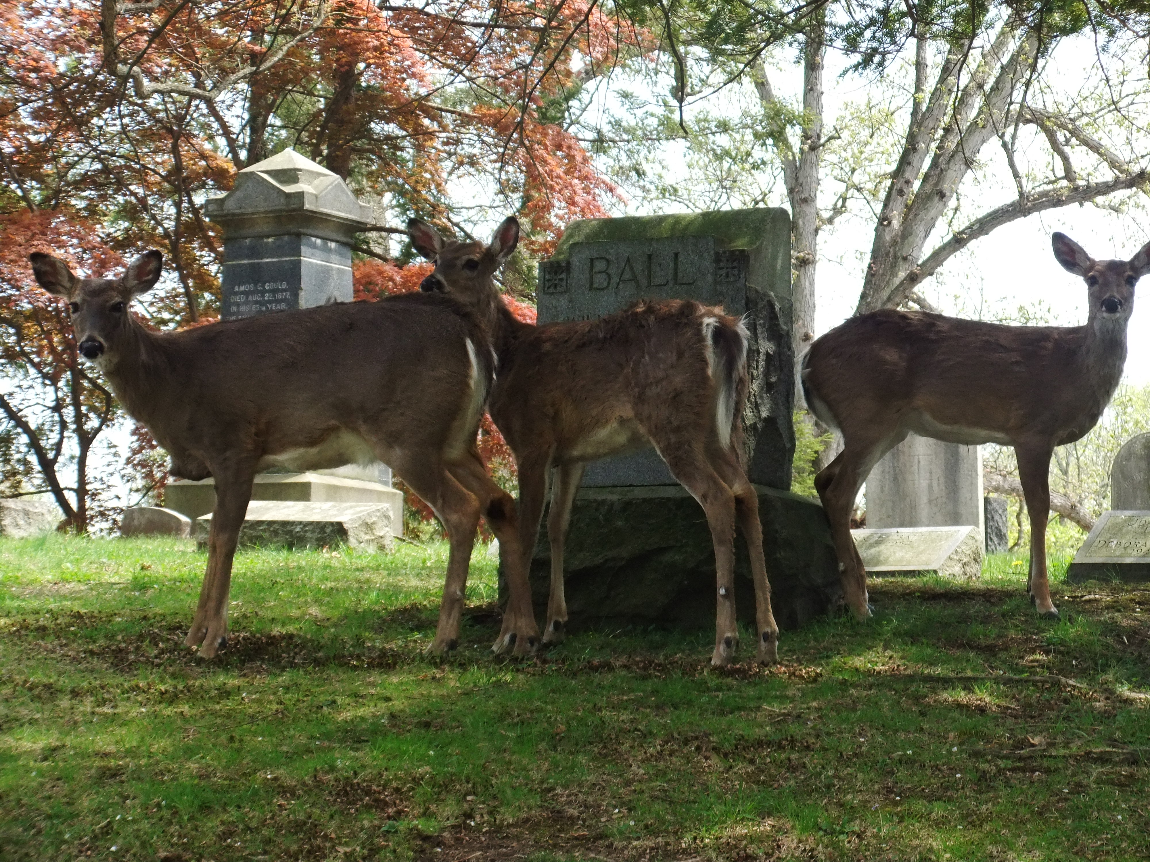 They explore as far as they can on the end of a leash. They notice the new trees the groundskeepers plant to replace the ones destroyed in the storms, the flowers and shrubs added by relatives around headstones. They find the evidence of deer, of raccoons, of owls; of the struggle for life and death that goes on in the animal side of things there. We’ve found dead moles, mice, birds and an inside-out rat, picked clean by crows.