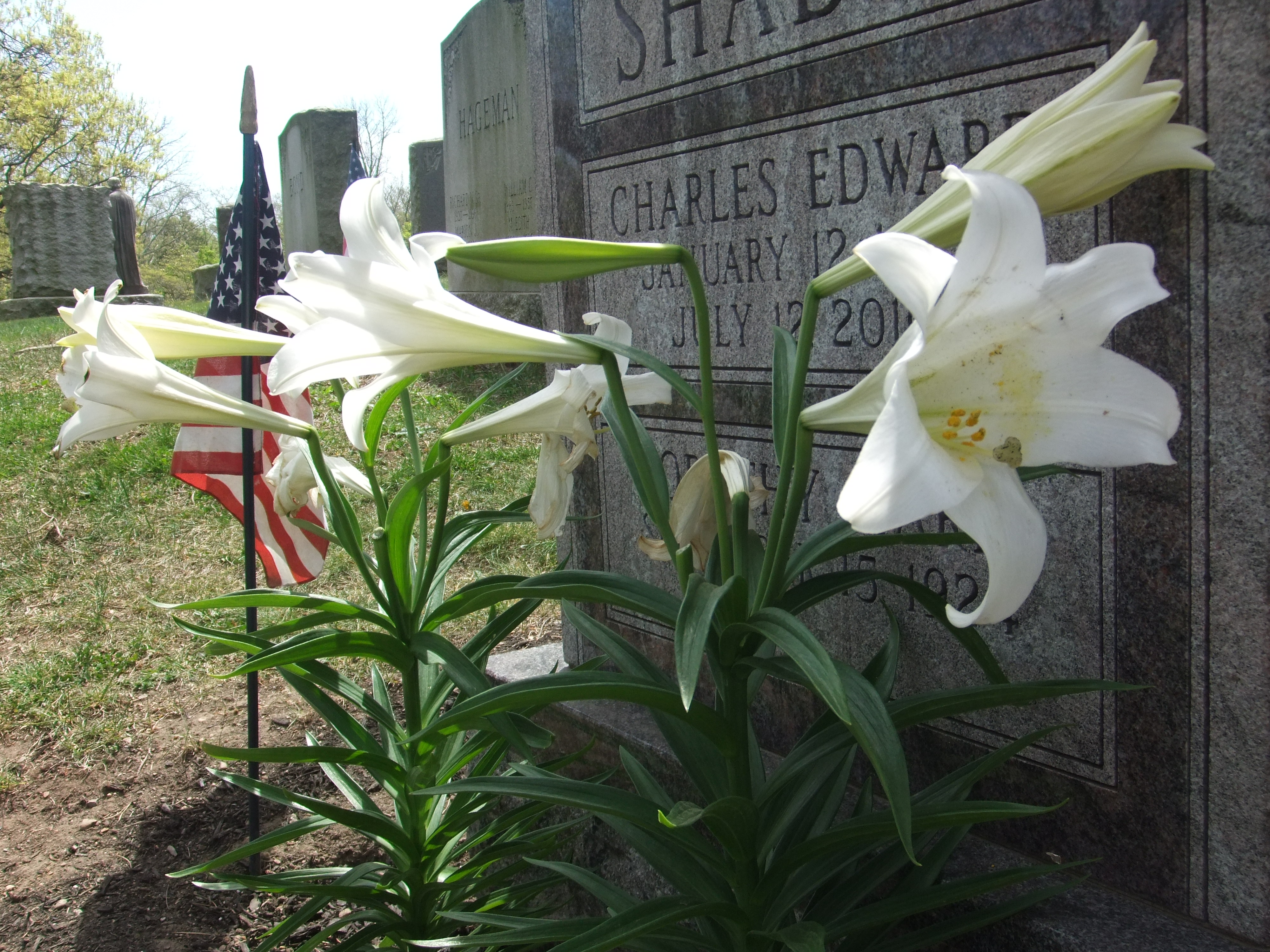 Palm Sunday I was walking my dogs in the cemetery. Sundays are busier there than any other day of the week, and holiday Sundays even more so. Team Puggle and I do our best to steer clear of people tending or visiting graves, as well as other dogs, so upon seeing five cars parked along the front drive, we took to the back paths.